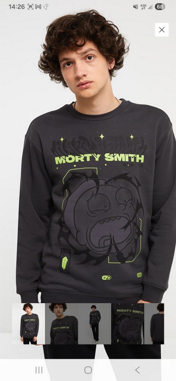 Gri renkli, uzun kollu ve yuvarlak yakalı erkek sweatshirtü. Rahat kesimi ve baskılı ön yüzeyiyle dikkat çeker. "MORTY SMITH" yazılı baskı mevcuttur.