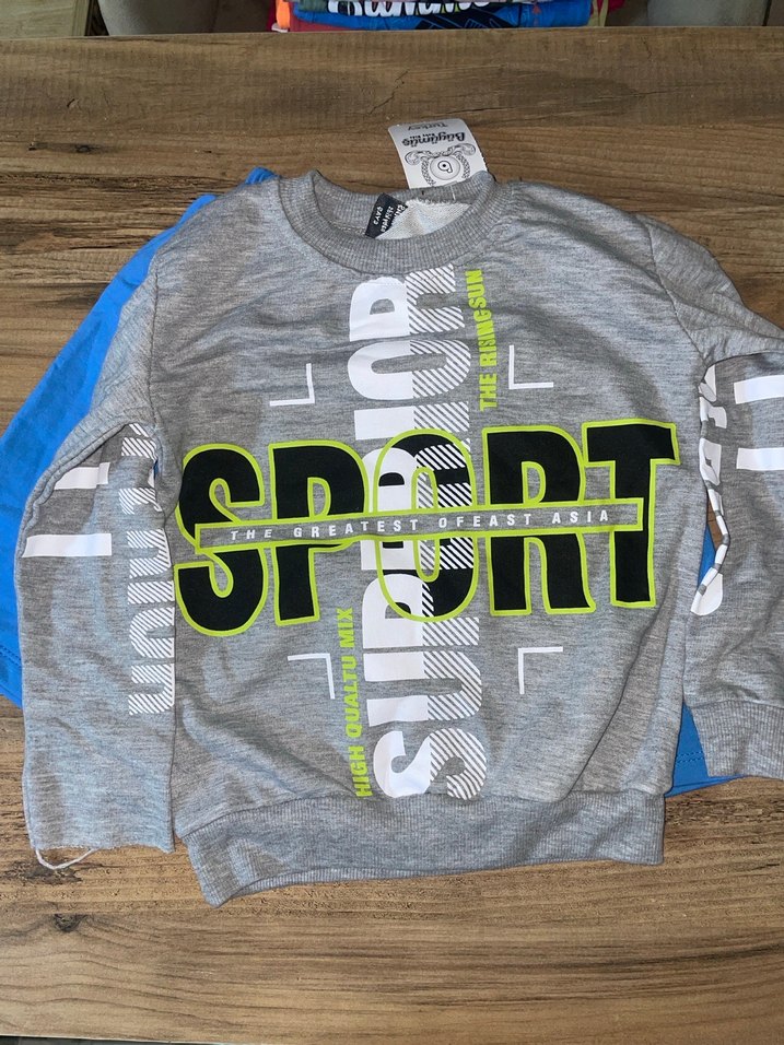 Gri renkli, baskılı, uzun kollu ve bol kesim erkek sweatshirt. Sentetik kumaştan üretilmiş, yuvarlak yaka ve velcro detaylara sahip. 5-6 yaş.