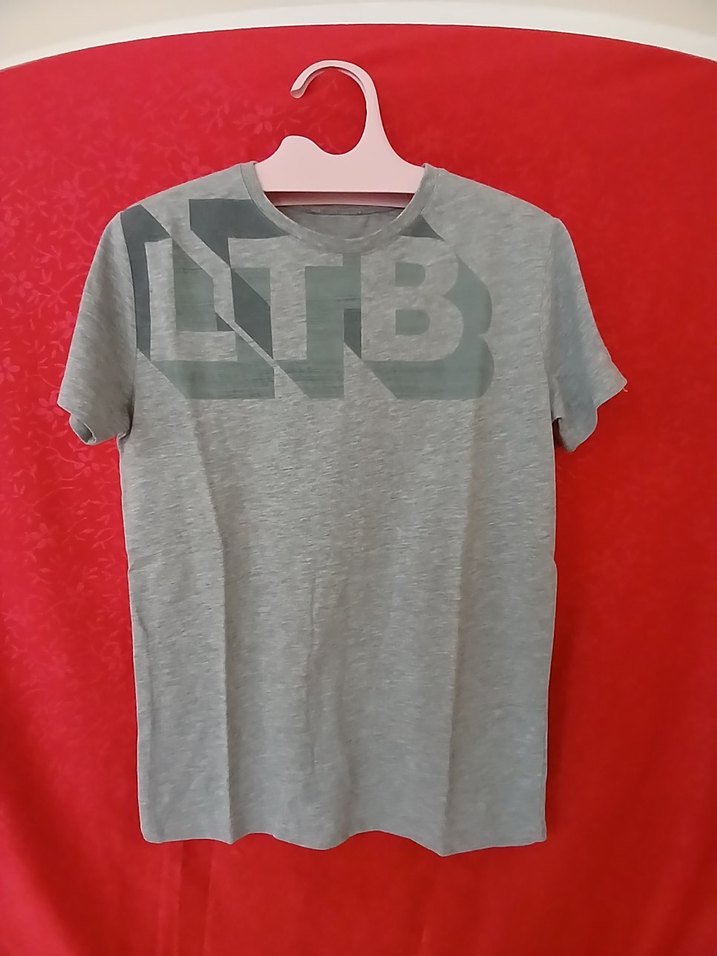 Gri baskılı, kısa kollu, yuvarlak yakalı, bol kesim erkek tişörtü, sentetik kumaştan günlük rahat kullanım için.