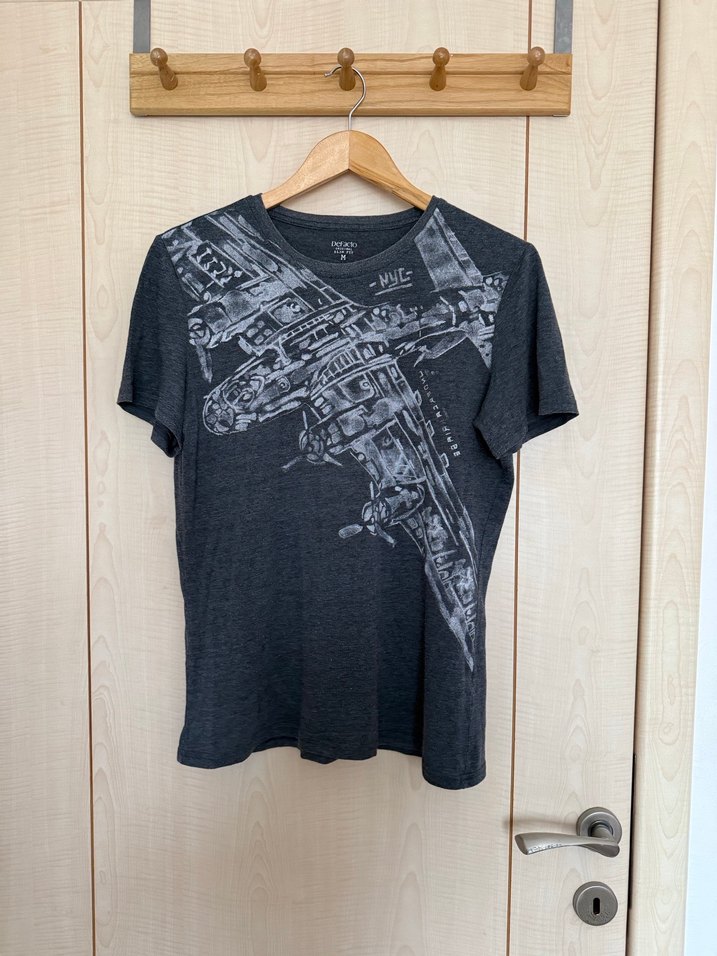 Gri baskılı, kısa kollu, yuvarlak yakalı erkek tişörtü. Denim kumaştan, bol kesim ve tokalı detaylıdır. Rock punk tarzını yansıtır. Günlük kullanım için uygundur. Üründe bir kusur bulunmamaktadır.