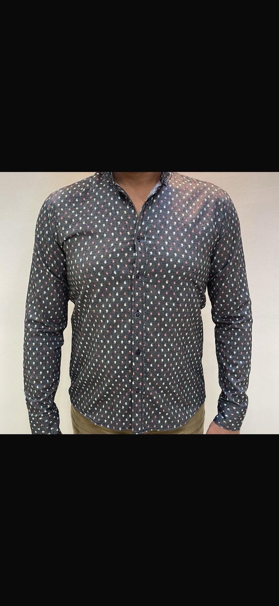 Gri Baskılı Erkek Uzun Kollu Gömlek