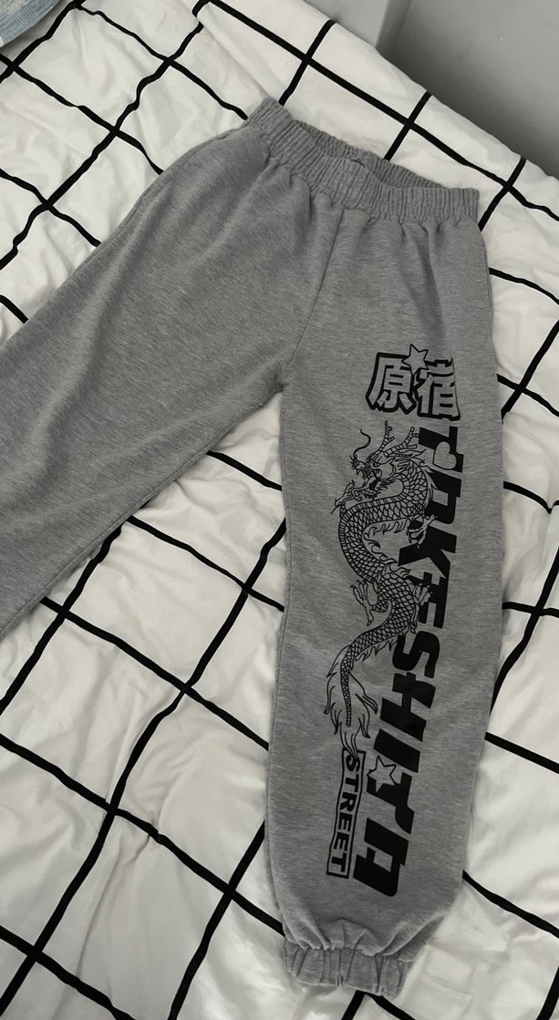 Gri renkte, baskılı desenli ve kadın eşofman. Günlük. Sentetik kumaştan üretilmiştir. çok az kullanıldı hiçbir kusuru yok