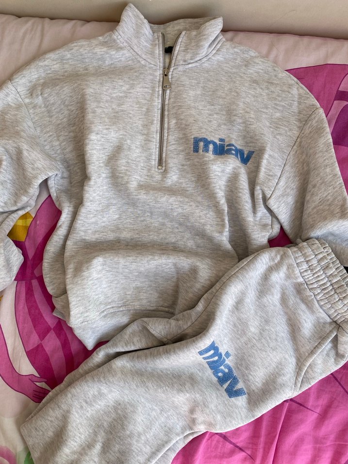 Gri, baskılı, fermuarlı ve uzun kollu eşofman takımı. Yumuşak ve sıcak kumaştan, rahat kesim, bisiklet yaka, sokak stili için uygun bacak hizsında bir kaç leke var leke çıkarıcısıyla çıkıcağını düsünüyorum