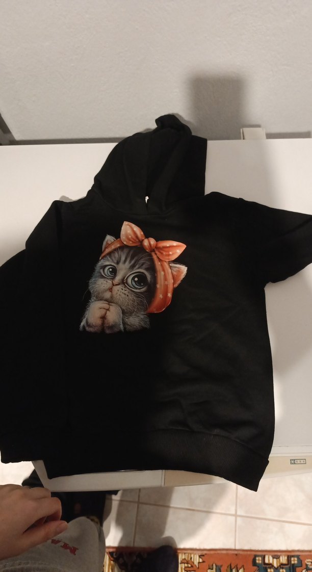 Gri Baskılı Fiyonklu Kedi Kapüşonlu Sweatshirt