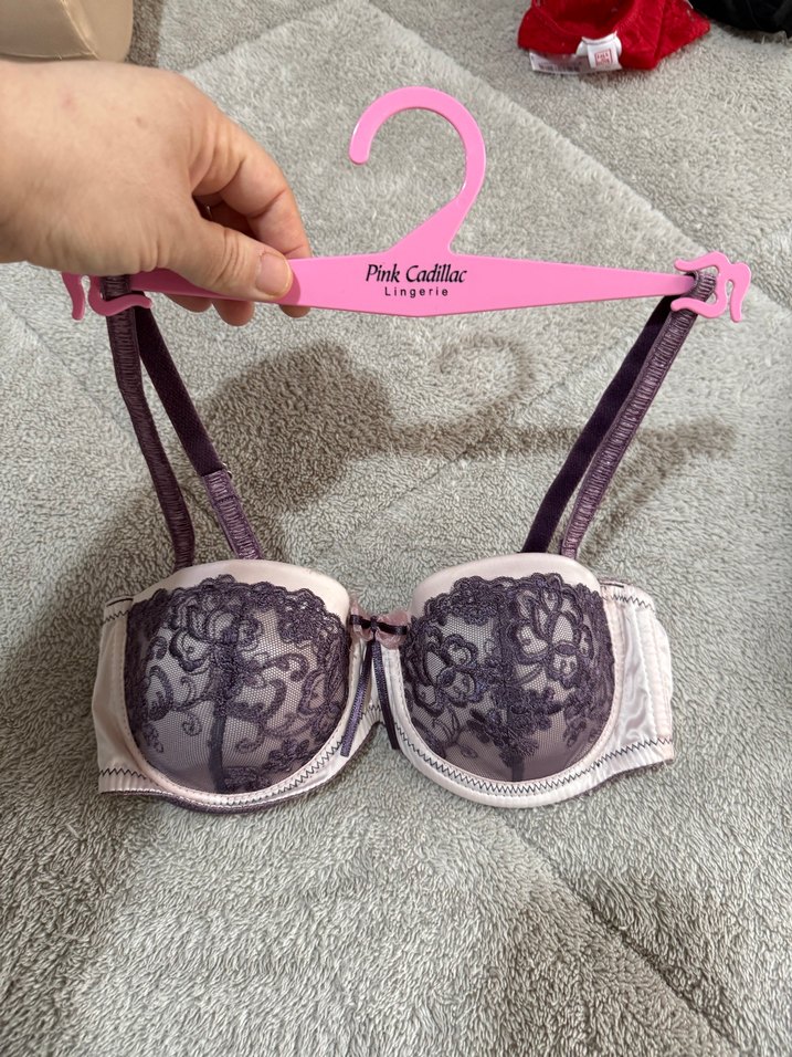 Gri baskılı gotik tarzda pembe sütyen 75