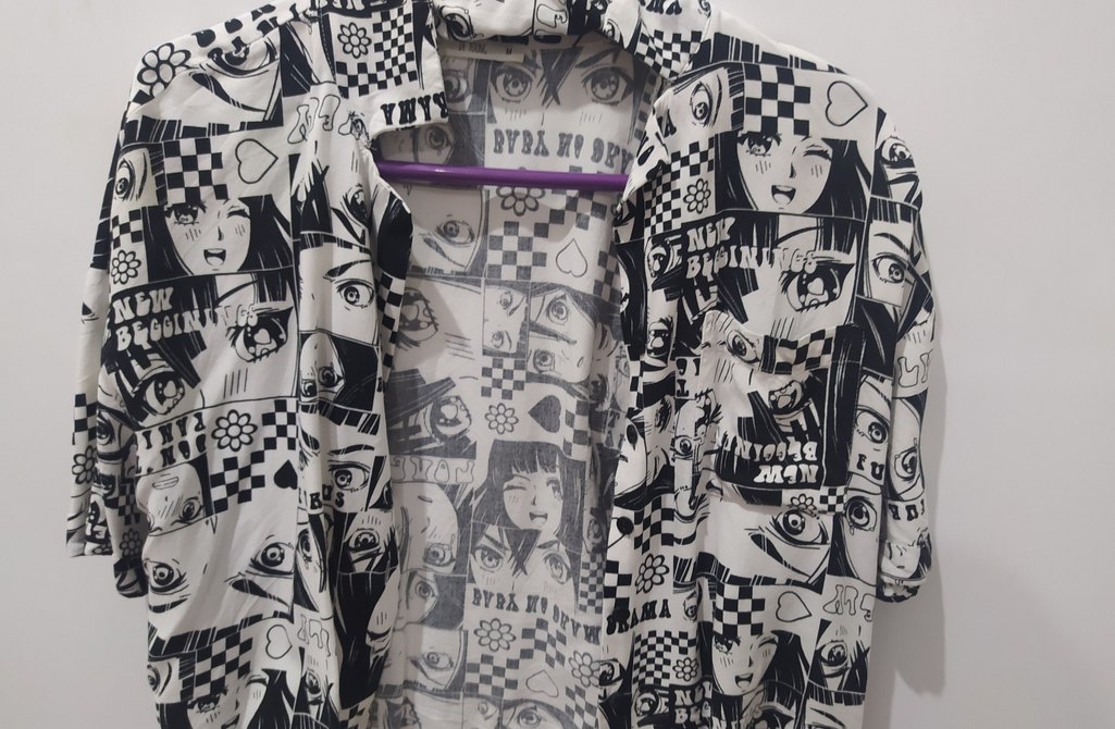 Gri Baskılı Grunge Punk Kadın Gömlek Anime Vintage