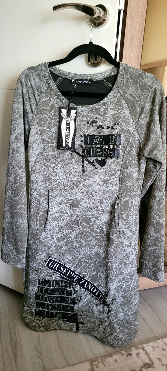 Uzun kollu, yuvarlak yaka ve bol kesimdir. Baskılı desenleri ve taş detayları vardır. Sokak stilini yansıtan yazılı yamalarla süslenmiştir. Yumuşak tekstil kumaştan yapılmıştır, günlük kullanıma uygundur.