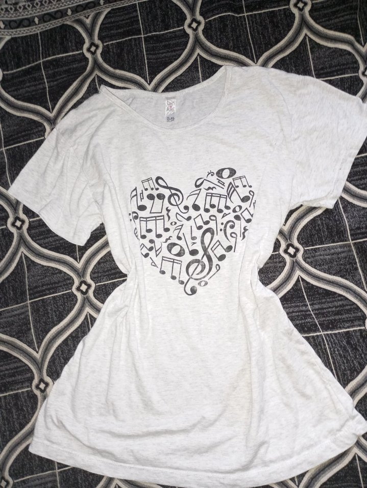 Pamuk kumaştan, kısa kollu, salaş kesim gri hamile tişörtü. Müzik notlarından oluşan kalp baskısı vardır. Rahat ve günlük kullanıma uygundur.