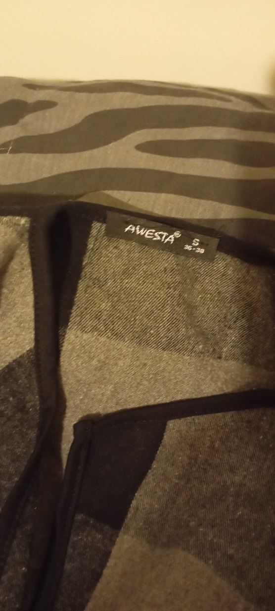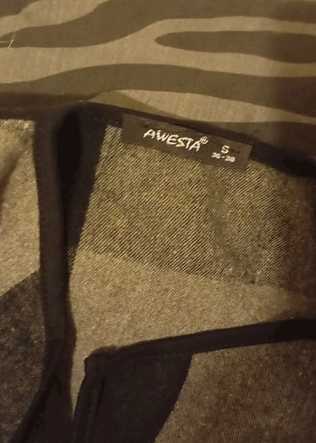 Gri renkli, baskılı desenli hırka. Uzun kollu, V yakalı ve bol kesimdir. AWESTA markasına aittir.