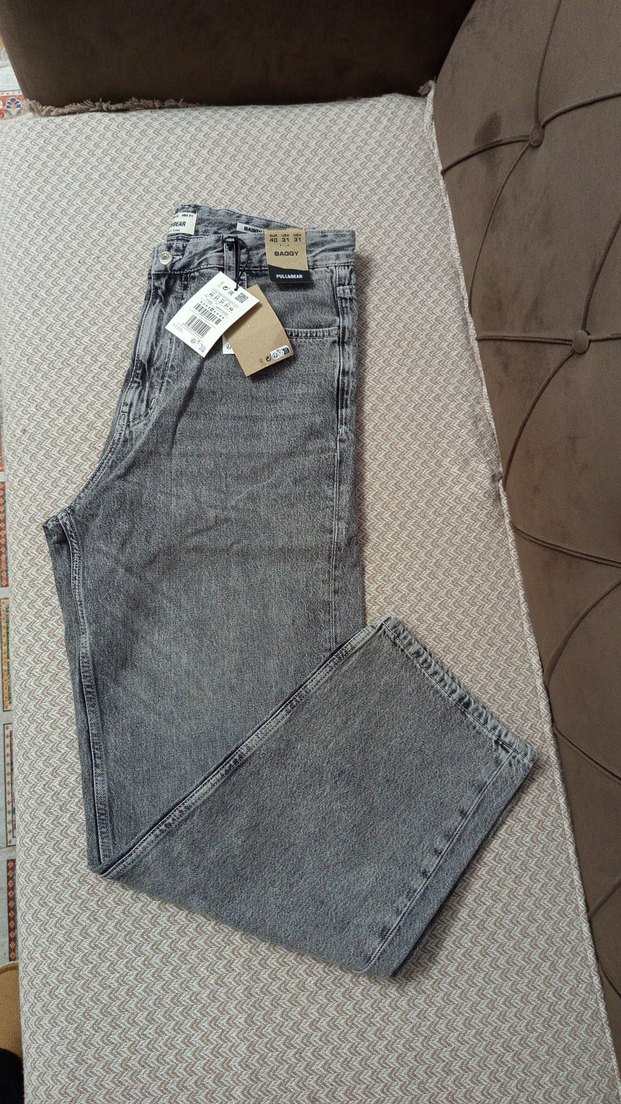 Gri renkli, baskılı desenli, kemerli ve normal boyda kadın denim pantolon. Rahat kesimiyle günlük sokak stiline uygundur.