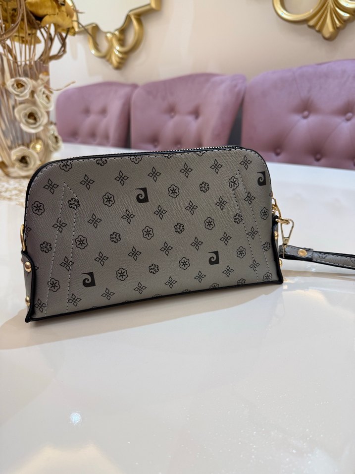 Gri baskılı kadın portföy çanta, fermuarlı kapama ve sentetik kumaştan üretilmiştir. Günlük kullanıma uygun, çağdaş ve klasik şıklığı yansıtır.