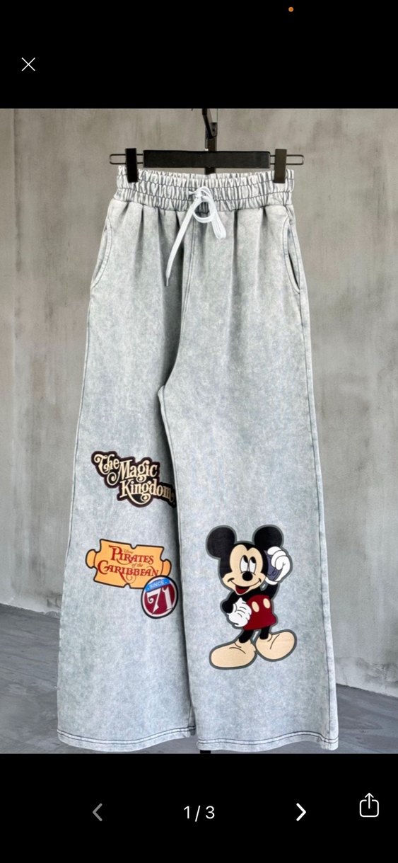 Pamuklu, gri renkli, baskılı ve düğmeli, normal boyda kadın salaş sweatpant. Günlük kullanıma uygun rahat model.