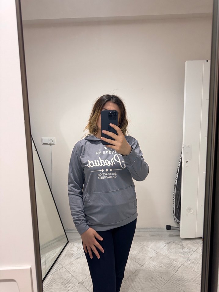 Gri renkli, uzun kollu ve bisiklet yaka kadın sweatshirtü. Ön kısmında baskı deseni bulunan, rahat ve bol kesim modeliyle günlük kullanıma uygundur. Yumuşak ve sıcak kumaştan üretilmiştir.