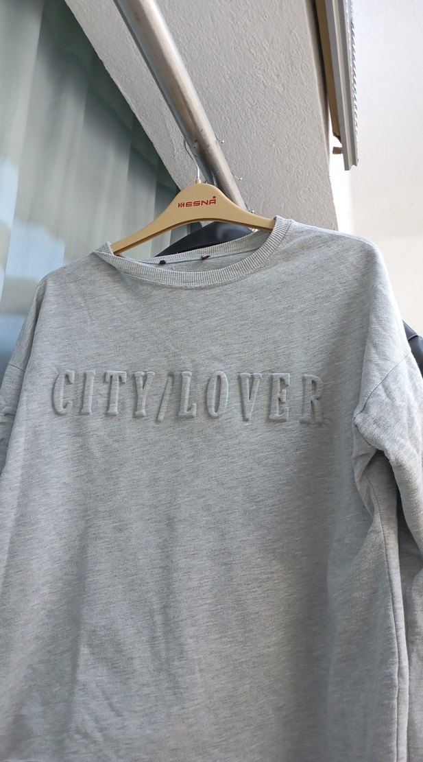 Gri pamuklu sweatshirt, yuvarlak yaka ve uzun kolludur. Bol kesim ve "CITY/LOVER" baskısı ile günlük sokak stiline uygun rahat bir modeldir. ️