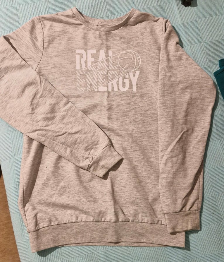 Gri renkli, uzun kollu ve bisiklet yaka erkek sweatshirtü. Bol kesimi ve "REAL ENERGY" baskısı ile rahat ve şık bir görünüm sunar. Günlük kullanıma uygun, yumuşak dokulu.