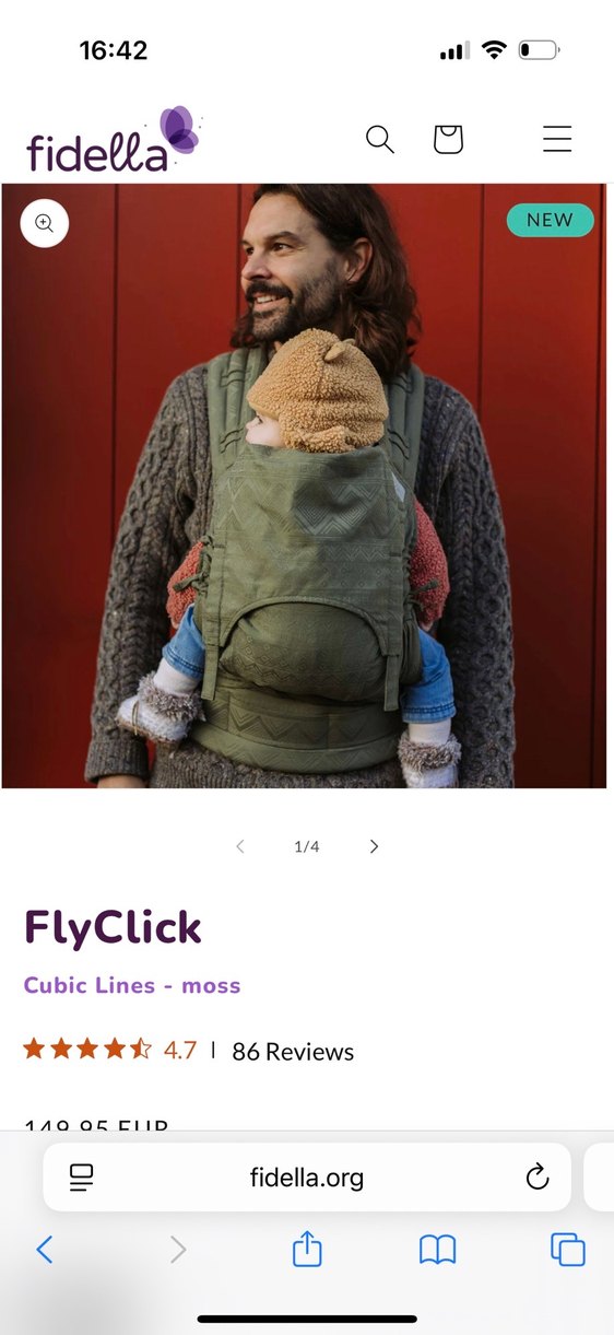 Gri renkli, baskılı desene sahip Fidella markasına ait kemerli çok güvenli aşırı kullanışlı bir kangurudur Euro üzerinden satışı 150 Euro civarı