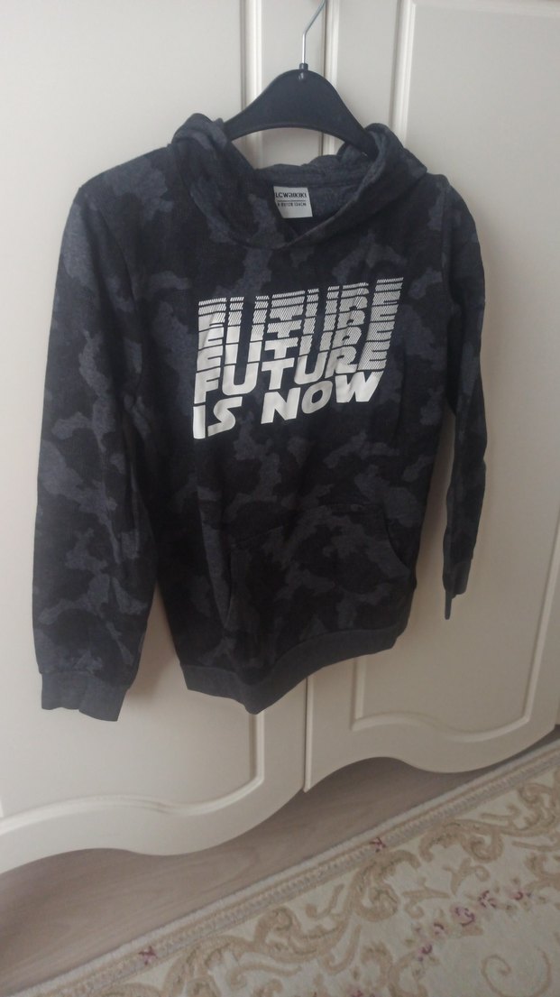 Gri Baskılı Kapüşonlu Erkek Sweatshirt