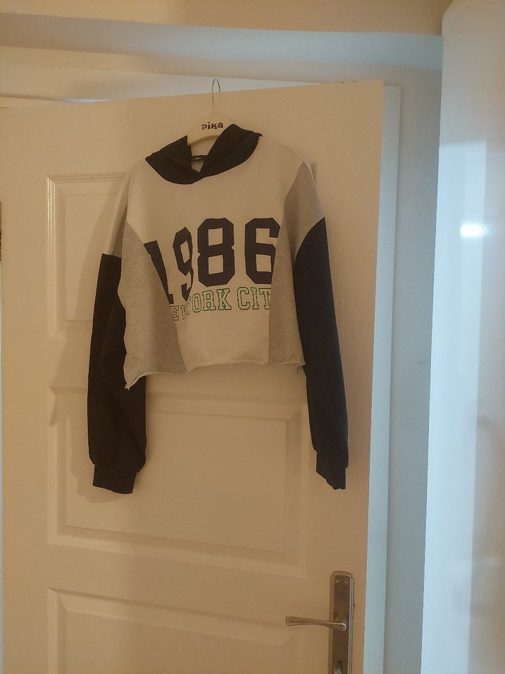 Gri renkli, uzun kollu ve bisiklet yaka kadın sweatshirtü. Örme dokusu ve 1986 baskısı ile rahat ve salaş bir görünüme sahip. Günlük kullanım için uygundur.