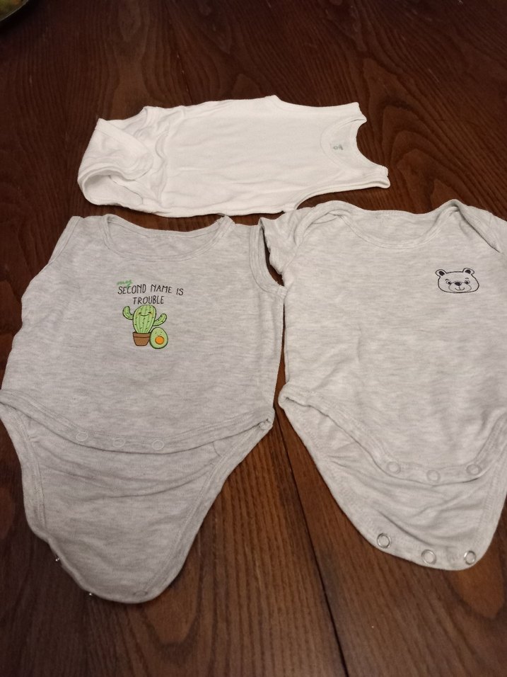 Gri renkli, kısa kollu, pamuklu ve baskılı desenlere sahip bebek body seti. Rahat ve yumuşak kumaşı ile konfor sağlar. 3'lü bady set