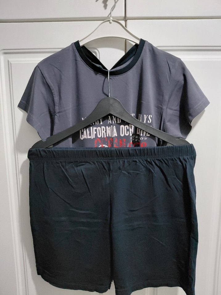 Gri baskılı, kısa kollu, yuvarlak yaka üst ve şortlardan oluşan bol kesim erkek pijama takımı, rahat ve şık bir görünüm sunar. 13-14 yaş sıfır hiç giyilmedi etiketi yok isteyene ölçü veririm hiçbir sorunu yok iade ve değişim yok