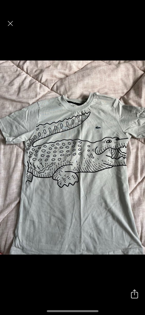 Gri renkli, baskılı timsah desenli, kısa kollu, dar kesim erkek tişörtü. Keten kumaştan üretilmiş, günlük kullanım için dantel detaylı rahat sokak stili.