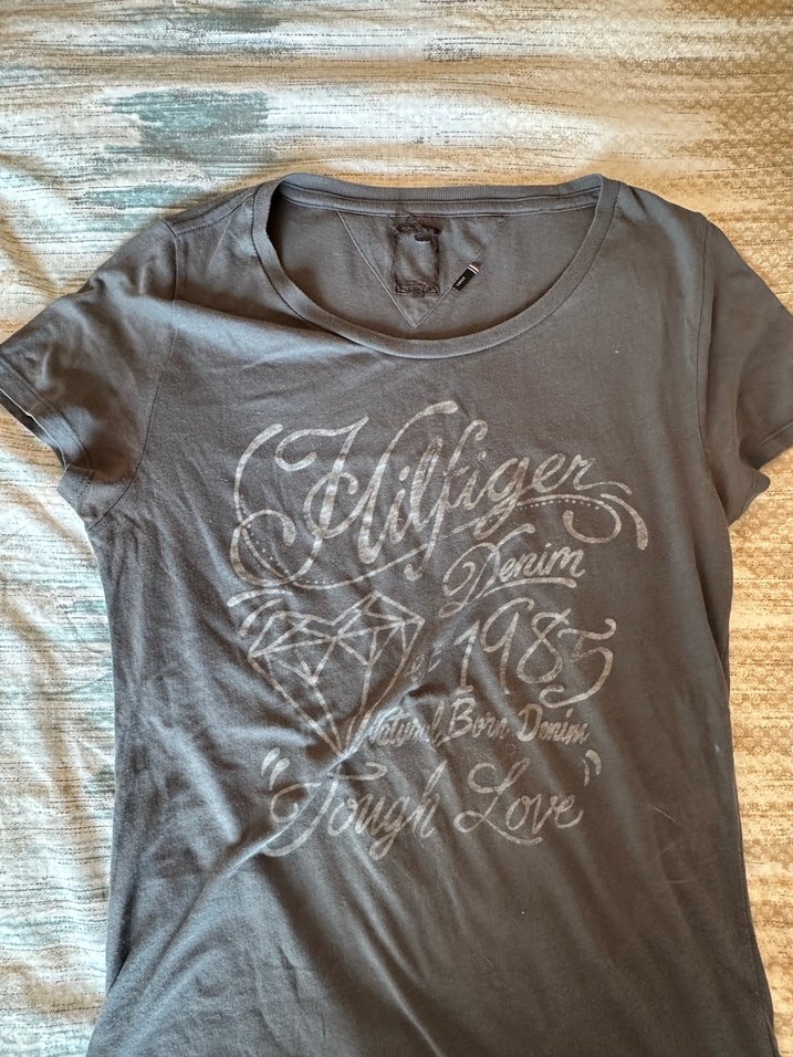 Gri renkli, baskılı ve kısa kollu hamile tişörtü. Rahat kesimi ve keten benzeri yumuşak kumaşı ile günlük kullanıma uygundur.
