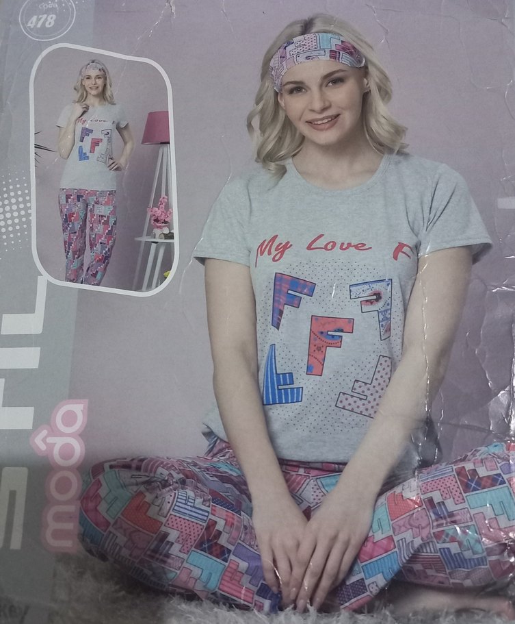 Gri Baskılı Kısa Kollu Kadın Pijama Takımı