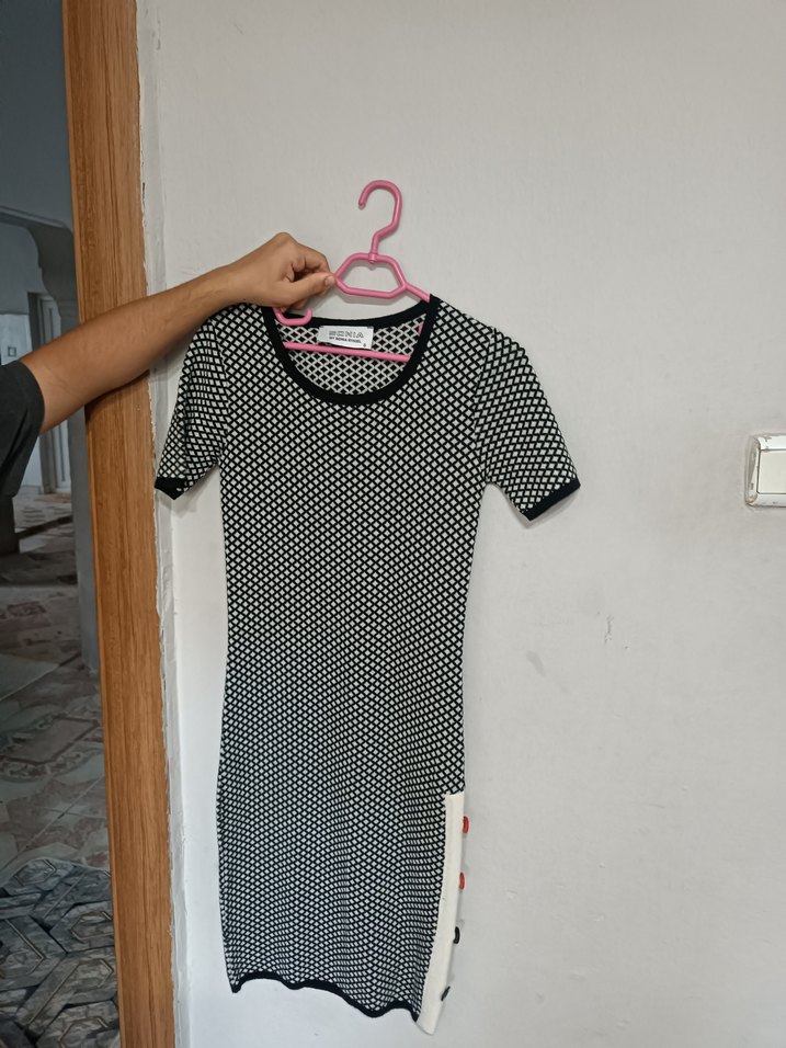 Baskılı desenli, kısa kollu, bisiklet yaka, midi boy gri triko elbise. Rahat sentetik kumaştan, sokak stiline uygun şık bir modeldir.