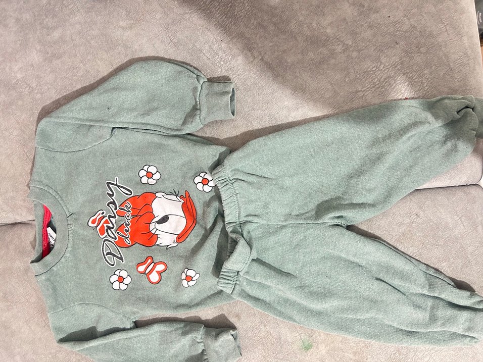 Yeşil renkli, baskılı kız çocuk takımı, uzun kollu. Örme kumaşı rahatlık ve sıcaklık sağlar, sokak stiline uygun. 4 yaşa uygundur. Sadece alt pantolonunda hafif bir sökük var dikilebilir. Kullanıma engel bir sorunu yoktur.