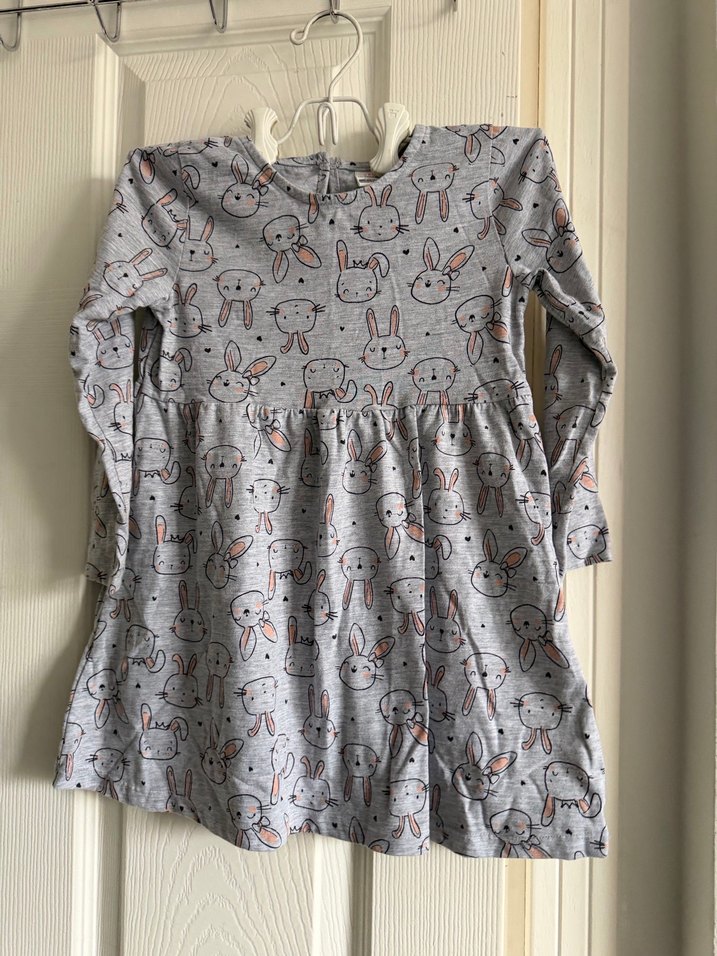 Pamuklu kumaştan, uzun kollu ve bol kesim gri elbise. Örme dokusu ve sevimli tavşan baskılarıyla trend günlük stile uygun. Marka Lcw.