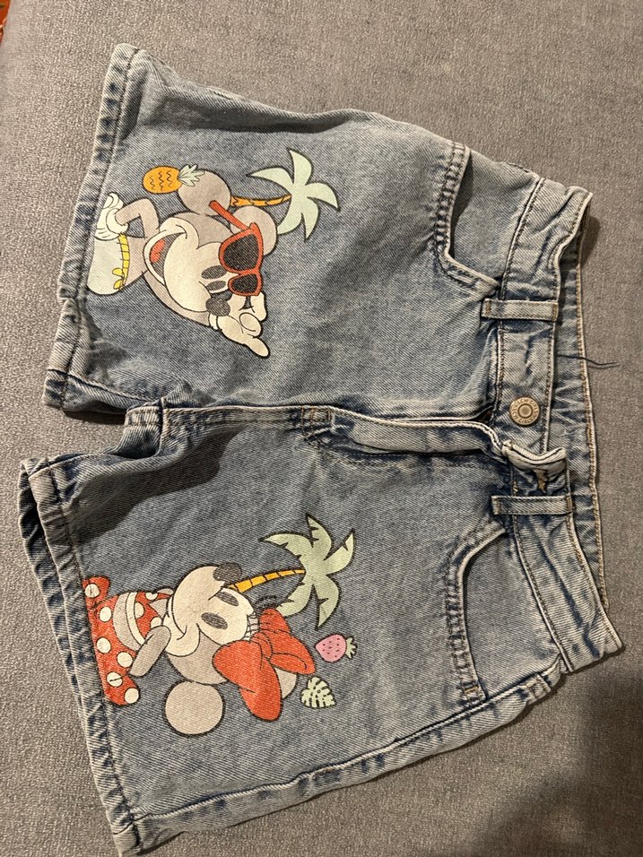 Gri kot şort, bol kesim ve düğmeli kapanışa sahiptir. Baskılı sokak stili desenleriyle trend bir günlük görünüm sunar.