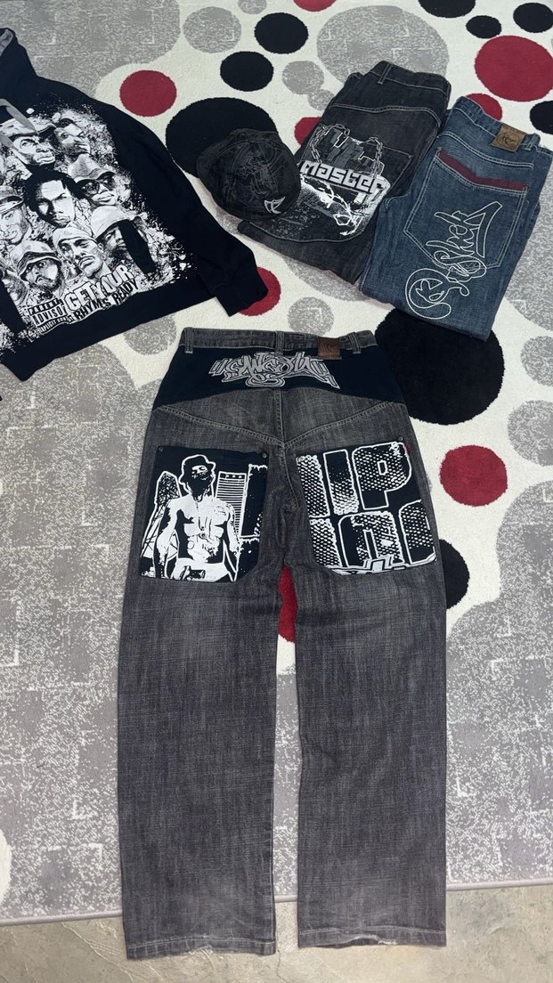Gri Baskılı Loose Fit Kadın Kot Pantolon
