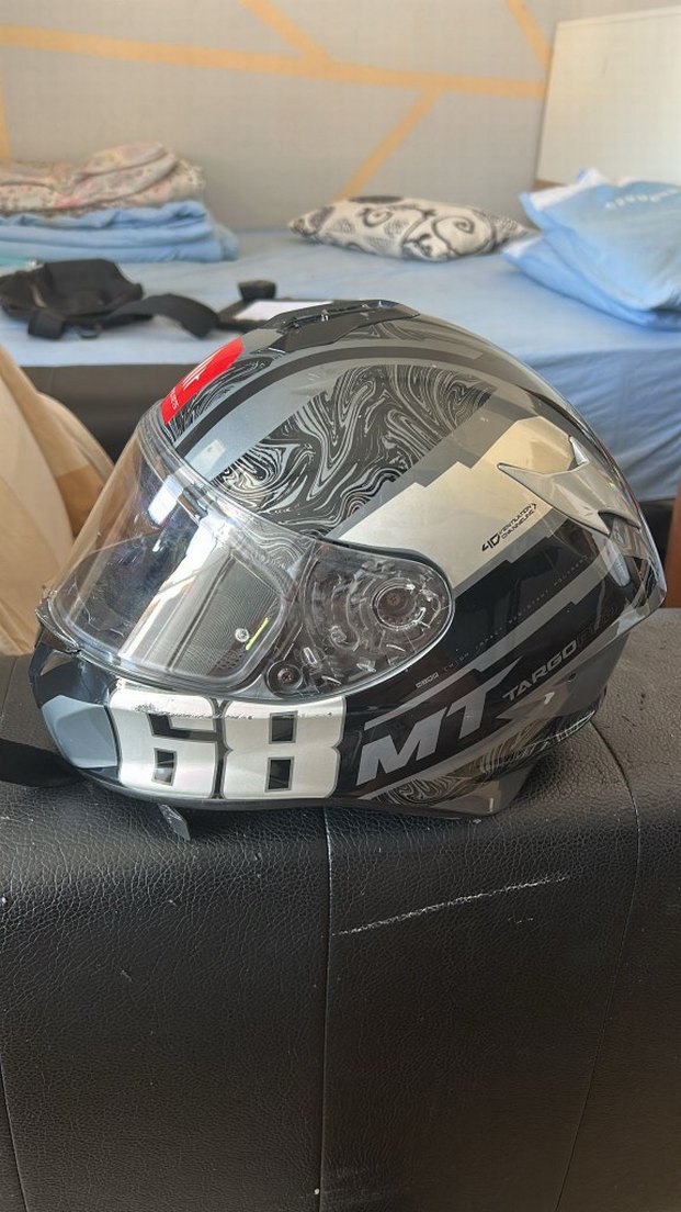 Gri baskılı MT TR-200 motosiklet kaskı, intercom yok xxl beden