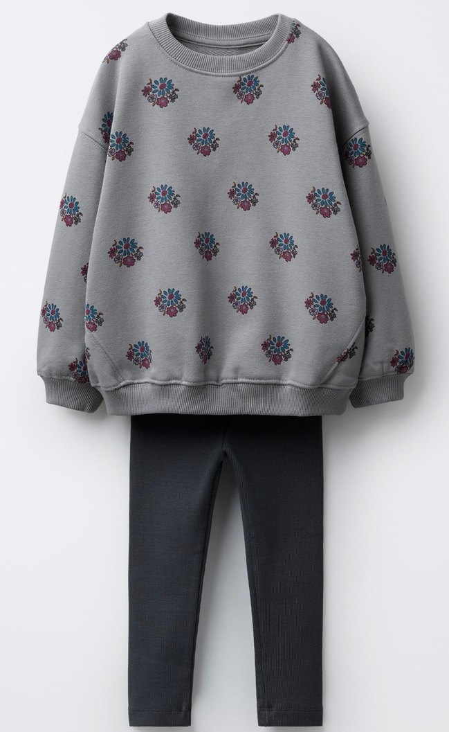 Gri renk, baskılı çiçek desenli, örme detaylı, yumuşak kumaştan, uzun kollu, bol kesim kız sweatshirtü. ✨ Baskılı Sweatshirt & Fitilli Tayt Takımı ✨ Miniklerin gün boyu rahat etmesi için tasarlandı Yumuşacık dokusu ve modern deseniyle hem konforlu hem şık bir takım. Üst: • Bisiklet yaka • Uzun kollu • Fitilli bitişli sweatshirt • %100 pamuklu kumaş • Tamamı baskılı Alt: • Elastik belli tayt • Fitilli yapı • %100 pamuklu kumaş Yaş Aralığı: 2-3 | 3-4 | 4-5 | 5-6 | 7-8 Günlük kullanıma uygun, nefes alabilen pamuklu yapısıyla çocukların favorisi olacak Bu model için tek ilan açılmıştır. Farklı yaş/beden seçenekleri mevcuttur. Satın almadan önce lütfen mesajla yaş bilgisini belirtiniz