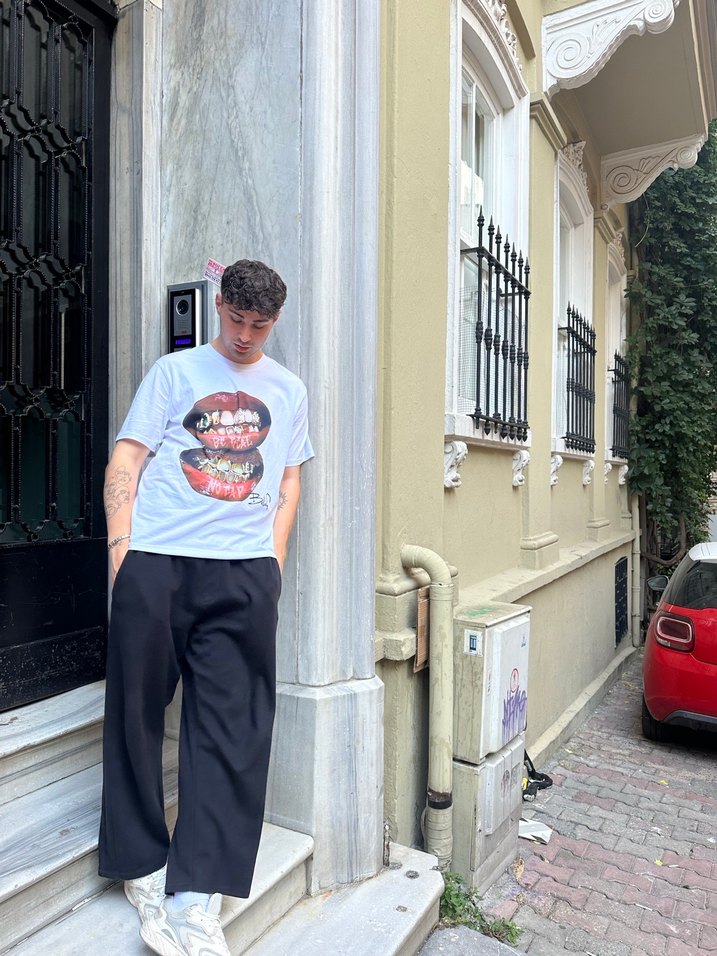 Gri Baskılı Oversize Erkek Tişört
