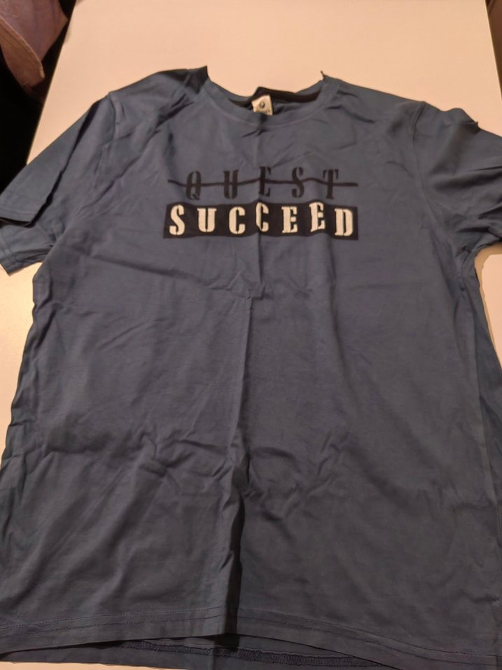 Gri pamuklu, yuvarlak yakalı ve kısa kollu oversize tişört, baskılı 'SUCCEED' yazısıyla sportif ve rahat tarz sağlar.