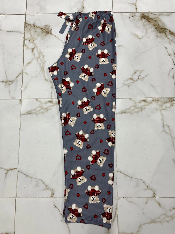 Gri renkli, uzun ve bol kesim kadın pijama altı, sevimli ayıcık desenleriyle rahatlık sağlar.
