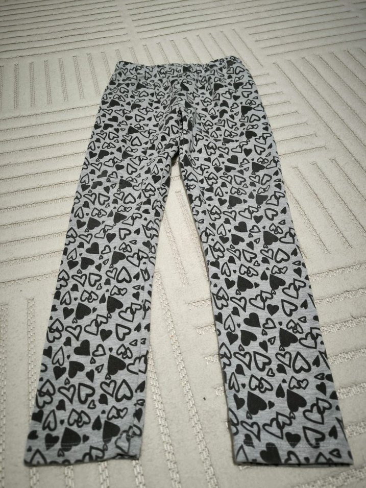 Gri renkli, elastik bel bantlı kız taytı, siyah kalp desenleriyle rahat tayt