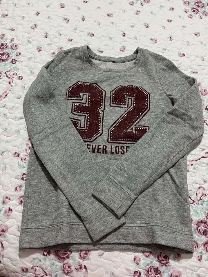 Yumuşak pamuklu, gri renkli, uzun kollu, bol kesim kız sweatshirtü. Önde 32 numara ve EVERLOSE yazılı baskı bulunur. Sokak modasına uygun rahat tarzda. xxs beden