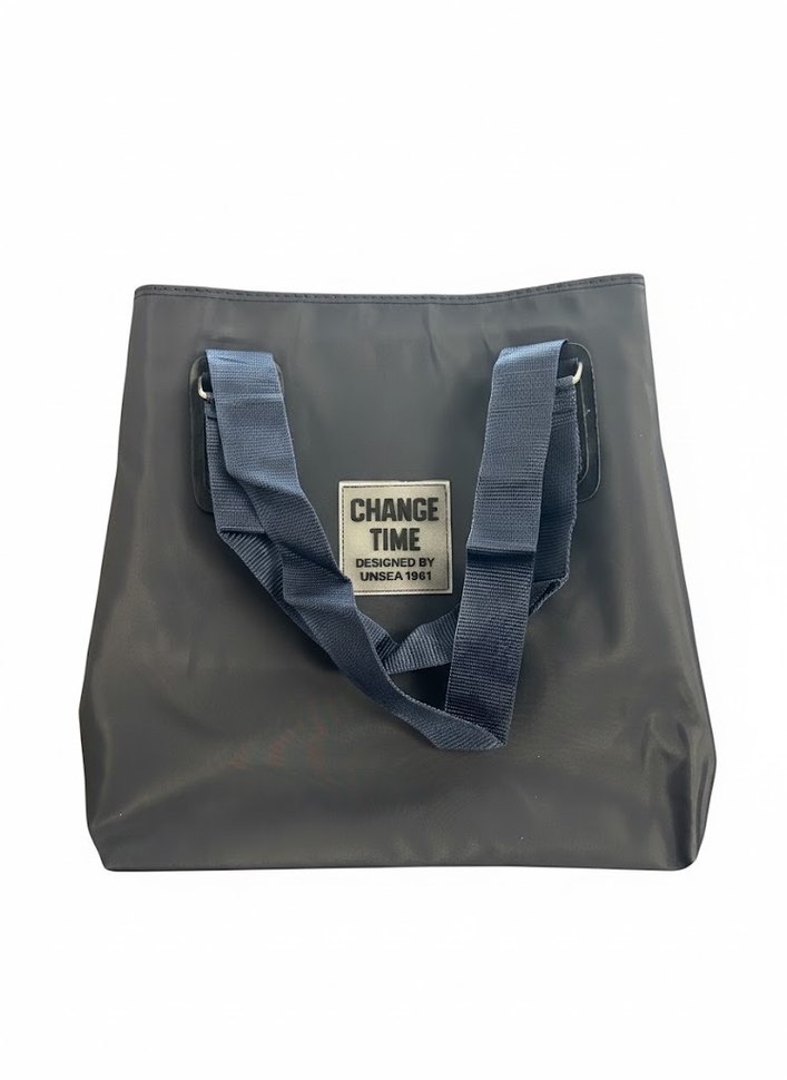 Gri renkte, baskılı ve tokalı kadın çantasıdır. Sentetik kumaştan üretilmiş olup, sokak stiline uygun ve günlük kullanıma elverişlidir. Üzerinde "TIME" ve "CHANCE" yazıları bulunur.