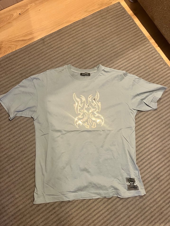 Pamuk gri erkek tişörtü, kısa kollu ve yuvarlak yakalıdır. Baskılı deseni ve bol kesimiyle günlük rahat sokak tarzı sunar.