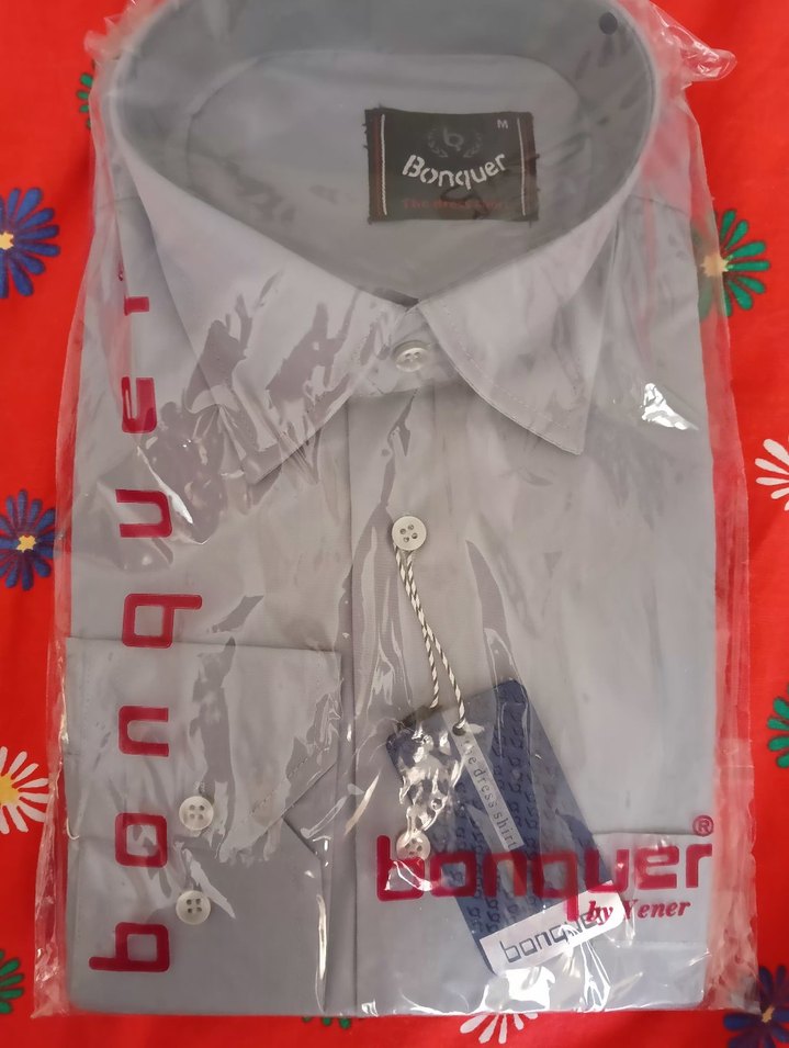 Gri renkte, baskılı desenli, uzun kollu ve düğmeli erkek gömleği. Regular fit kesim, sentetik kumaştan, iş ortamı için uygun. Bonjour markasına ait. yeni etiketli ürün.