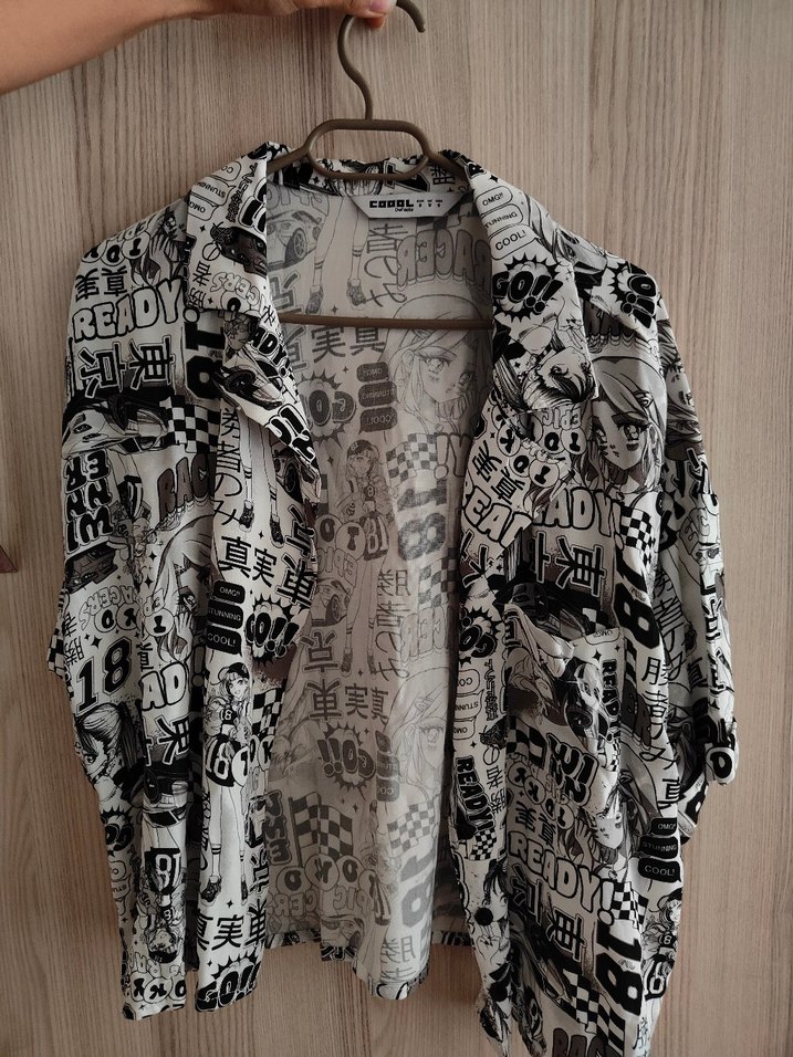 Gri baskılı, uzun kollu, düğmeli ve küçük yaka detaylı kadın gömleği. Rahat kesimiyle günlük kullanıma uygundur.