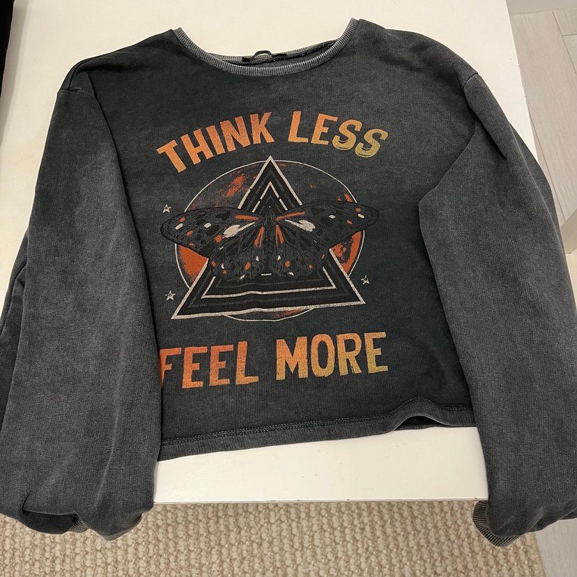 Gri uzun kollu ve yuvarlak yakalı bol kesim kadın sweatshirt. Az kullanılmış defosuz