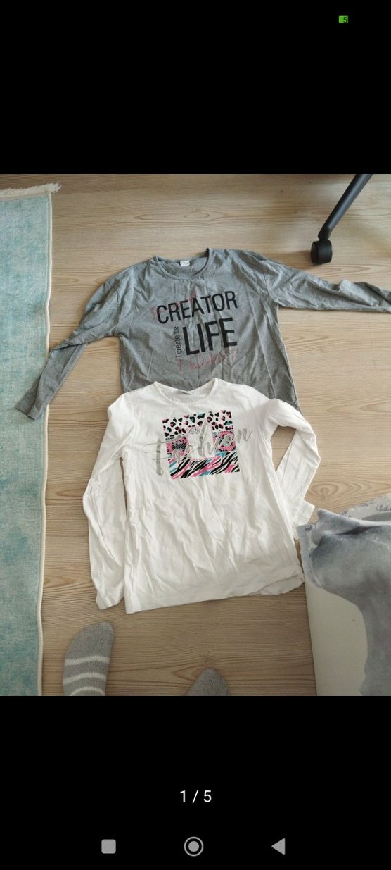 Gri baskılı, uzun kollu kız tişörtü, pamuklu kumaştan ve bol kesimlidir. CREATOR ve ILIFE yazılı baskıya sahiptir, yuvarlak yakalıdır. beyaz olanda defo var fotoğrafladim
