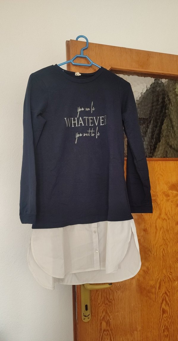 Gri renkte, pamuklu örme kumaştan yapılmış, uzun kollu ve bisiklet yaka hamile tişörtü. Önünde 'WHATEVER' baskısı ve beyaz katmanlı etek ucu bulunur, günlük rahat kullanım için uygundur.