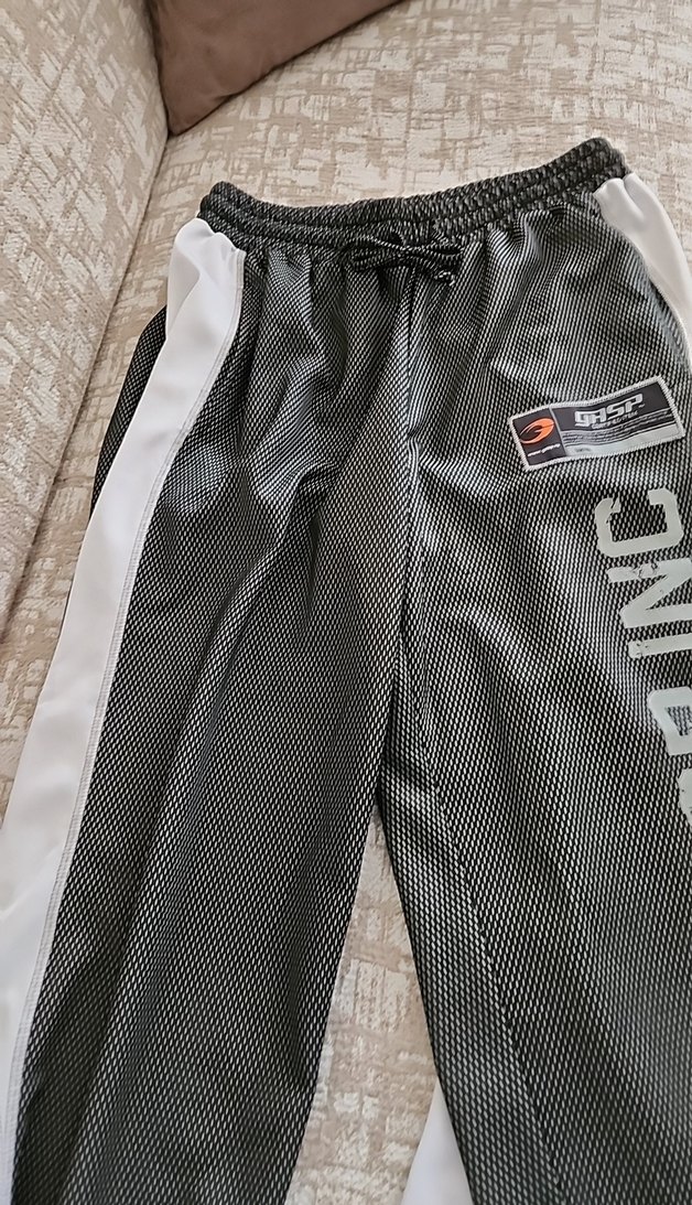 Baskılı desenli, yanları beyaz şeritli gri eşofman altı. Fermuarlı cepler ve elastik bel bandı ile rahat kullanım sağlar. Spor ve günlük kullanıma uygundur. ♂️