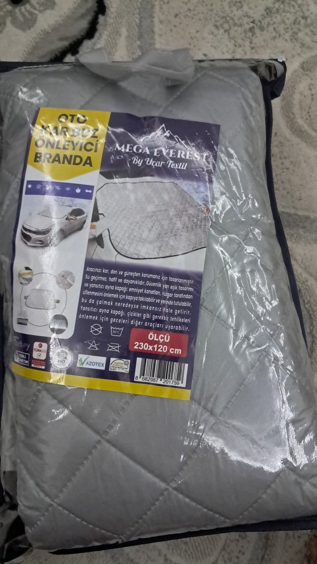 Gri baskılı yatak koruyucu branda, 230x120 cm ölçüsünde, dayanıklı malzemeden üretilmiştir. Yatak koruması sağlar.