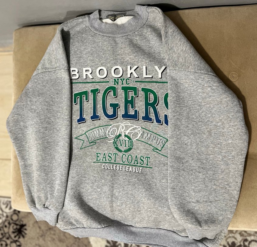 Gri renkte, uzun kollu ve bisiklet yaka olan bu sweatshirt, baskılı yazılar ve zincir detaylarıyla dikkat çekiyor. Rahat kesimi ve yumuşak kumaşıyla spor tarz için uygundur.