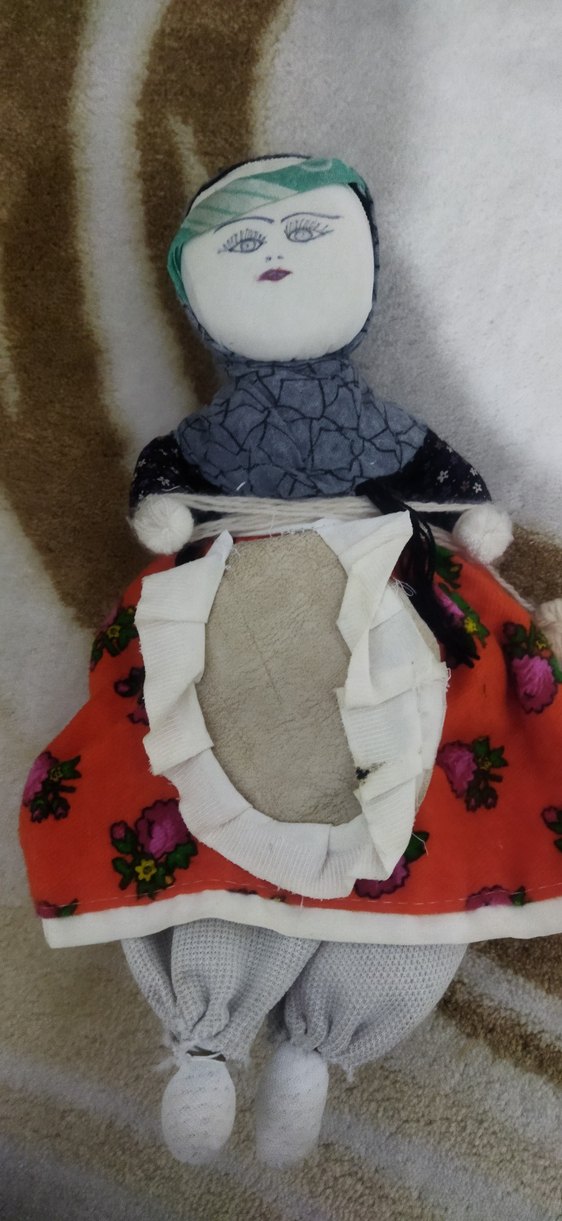 Gri Başlıklı Renkli Etekli Bez Bebek el yapımı